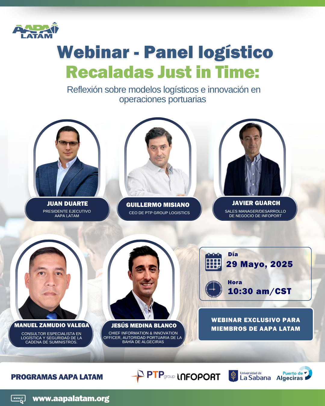 Paneles Logísticos de AAPA LATAM es un espacio virtual donde voces expertas analizan los temas clave del sector portuario y logístico en ALC, digitalización, sostenibilidad, eficiencia operativa y transformación logística a partir de casos reales, métricas y lecciones aprendidas para convertir la experiencia en acciones concretas. Al reunir a la comunidad en torno a estándares y buenas prácticas, AAPA LATAM facilita la toma de decisiones y fortalece la representación técnica de la región ante reguladores, inversionistas y aliados.
